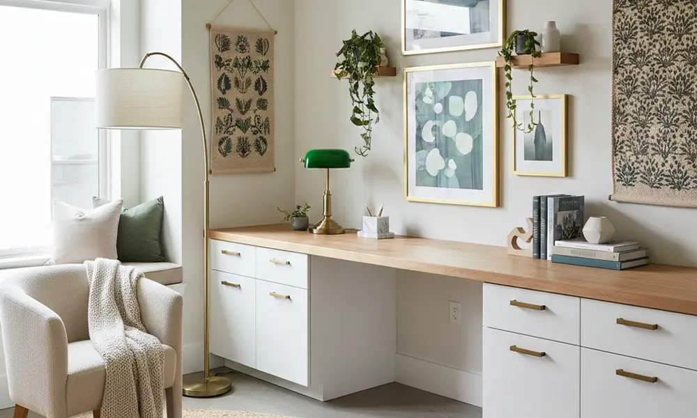 Depois que o espaço já está funcional — mesa na altura certa, iluminação resolvida, organização funcionando — vem uma parte que muita gente subestima: decorar um ambiente que reflita a própria personalidade. Porque ninguém passa oito horas por dia em um lugar que parece catálogo.
