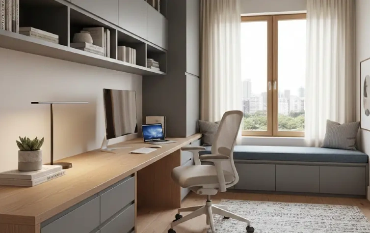Tendo um bom planejamento, transforma espaços antes pouco aproveitados em áreas produtivas, mantendo a fluidez da casa. No entanto, exige atenção especial à profundidade mínima da bancada e ao posicionamento da cadeira para garantir conforto real.